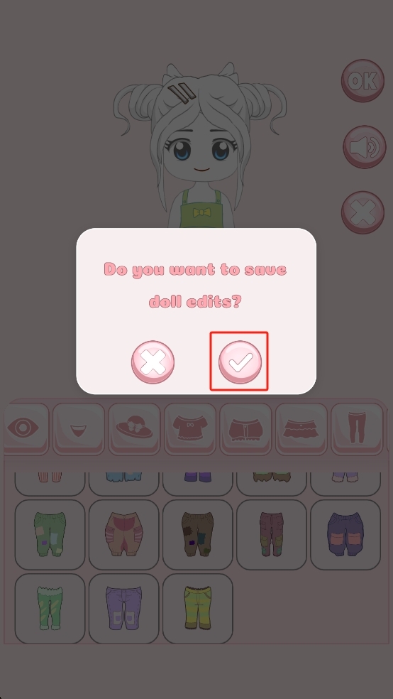 编辑完成后会弹出保存提示,点击粉色对勾按钮即可确认保存玩偶的编辑内容,同时还能查看搭配细节评分,为你下次优化装饰组合提供参考。