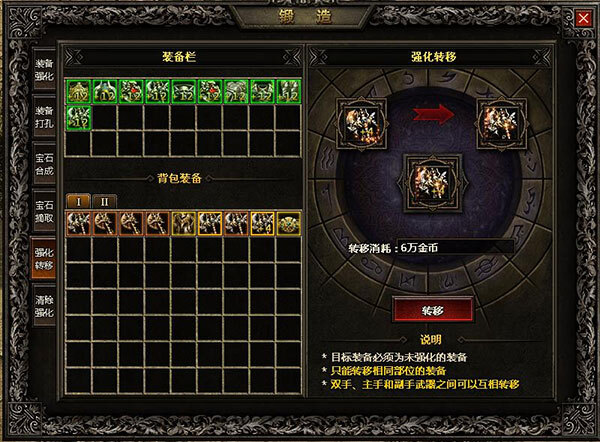 想要成为救世英雄,勇者需持续成长。然而,把精心打造的极品装备卖店,实在让人痛心。为提升游戏体验,“锻造”体系设有转移操作,能将已强化装备的强化等级,百分百转移到未强化的装备上。这样,在装备“更新换代”时,就无需重新开始强化,勇士们的超强实力得以始终保持!