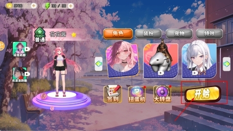 进入游戏后,在角色选择界面能看到各式各样的角色形象,选好心仪的角色后,点击界面右下角的开始按钮,即可进入关卡选择的环节。