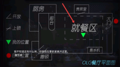 2、依据OLG餐厅的平面图,明确所处位置,规划逃生或探索的路线,优先朝着大门方向行进,尝试脱离当前区域。