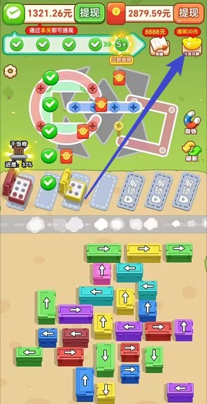 解压时光融合了挪车和解螺丝两种玩法,难度设置比较友好,玩家只需拆掉关卡里所有螺丝就能通关,通关后能获得不少红包奖励,闯关过程中还可以使用道具助力,轻松解决通关难题,最后积累的元宝还能兑换成可提现的红包。