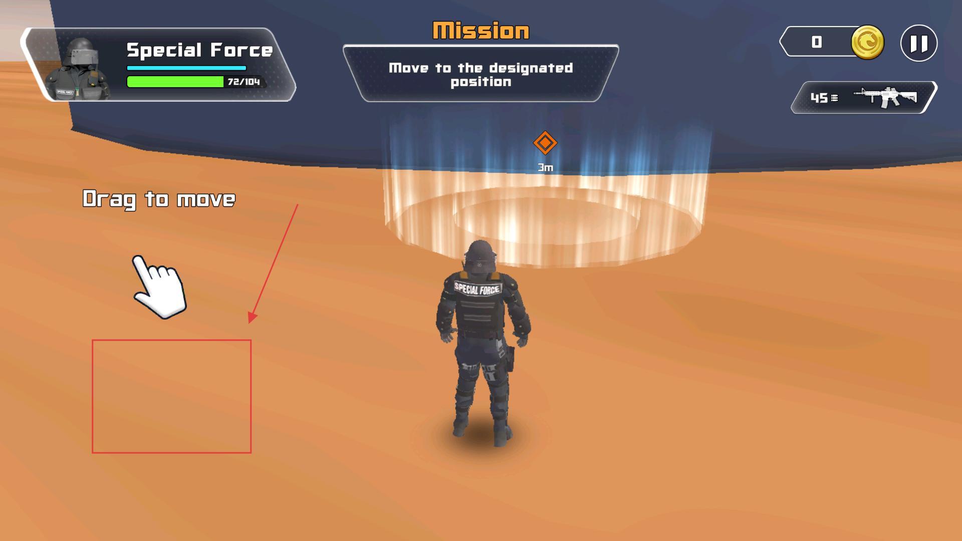 1. 通过拖动屏幕的空白区域,实现对角色移动的控制,使其朝着指定光圈的位置行进,进而完成移动任务。
