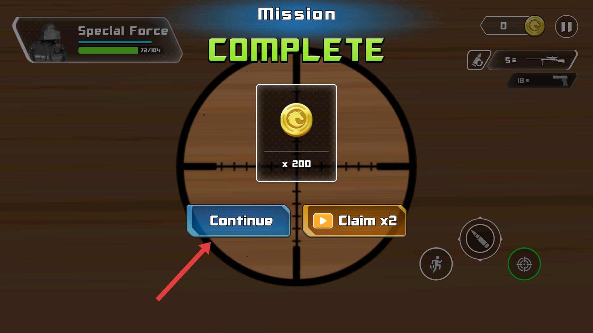 3、当任务完成后,结算界面会出现,此时点击“继续”按钮,即可开启下一轮游戏任务挑战。