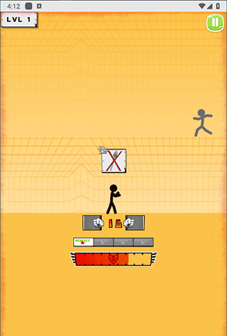 2. 在各个关卡里,你得操控黑色火柴人去击打敌方火柴人。当敌方火柴人进入你的攻击范围时,点击拳头按钮就能发动攻击。