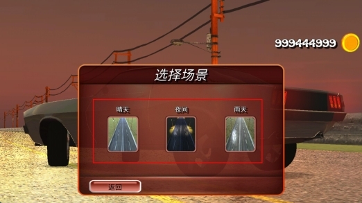 2、点击“开始”后,会弹出选择场景的界面,提供晴天、夜间、雨天这三种场景供您挑选,选择心仪的场景即可进入驾驶环节。