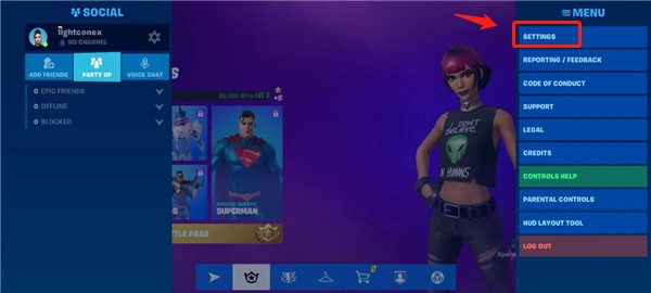 首先,打开堡垒之夜正版,找到【SETTINGS】设置