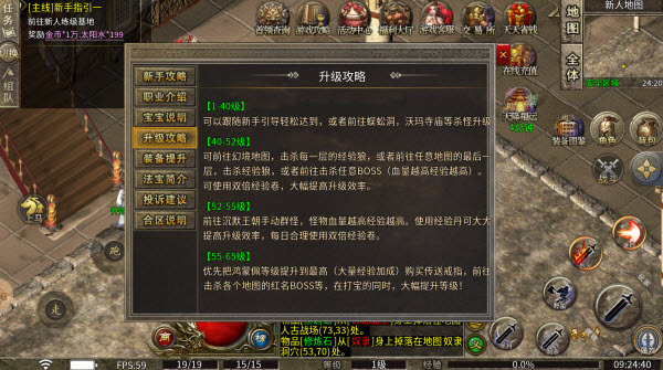 复古版传奇为玩家贴心配备了详尽的新手引导以及全面的玩法攻略,这些内容玩家随时都能在菜单面板里查看,完全不必担心在游戏中迷失方向。