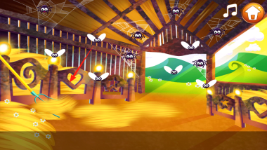 1、踏入谷仓场景,入目皆是垃圾、苍蝇与蜘蛛。瞧见地上的瓶子和香蕉皮,用手指将它们拖进绿色回收桶,清理垃圾,使谷仓恢复整洁,顺便驱赶一下四处乱飞的苍蝇。