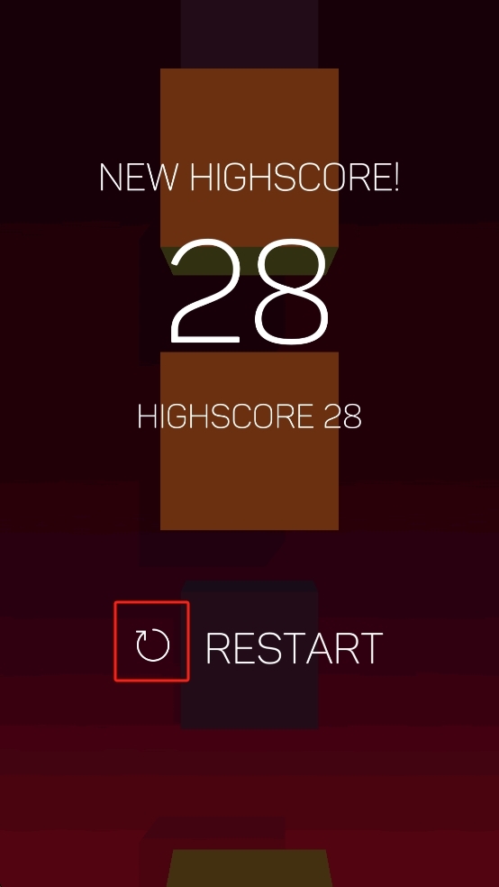 3、游戏结束后,结算界面会显示本局获得28分;若要重新开始游戏,点击左侧带有循环箭头标识的RESTART按钮即可。
