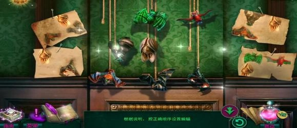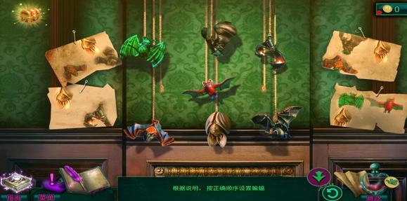 1、在密室逃脱12神庙之旅的蝙蝠关卡里,初始状态和图中展示的一样。要依据旁边的四张图,按照正确的顺序来设置蝙蝠。