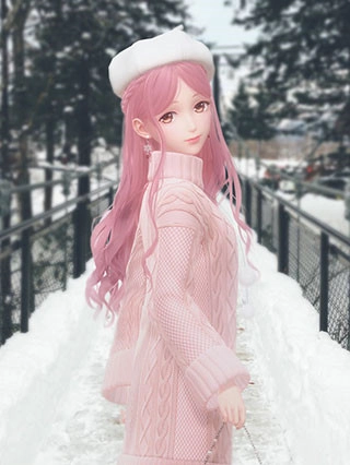 暖暖初雪套(亲密度达到20后,大概需要花费700至800钻制作完成,属于稀有套装),其中的发型推测名为粉岚。