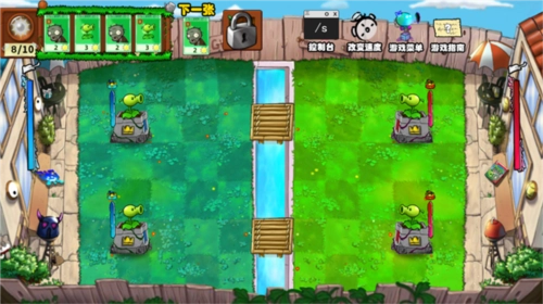 4、进入到里面之后,我们可以放置各种不同的植物和僵尸来攻击敌人,把敌人的防御塔摧毁。