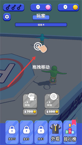 玩家借助虚拟摇杆操控橡皮人移动,同时利用攻击、跳跃和特殊技能按键,与游戏场景及其他玩家展开互动。