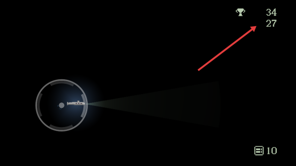 2、在游戏里借助光束去探索黑暗的区域,与此同时留意右上角的分数变动情况,通过操作来提高得分,在巡航的过程中要注意避开潜在的危险。