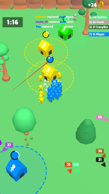 2、需要不断拓展自身地盘,在遇到其他玩家或敌人时主动出击发起战斗,借助队伍规模优势吞并对方的地盘,与此同时要留意防守好已经占领的区域。