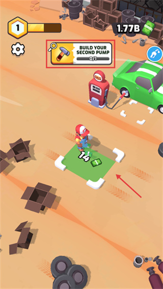 4、完成升级后,继续清理道路上的障碍,并收集油泵旁边的货币以推进进度。