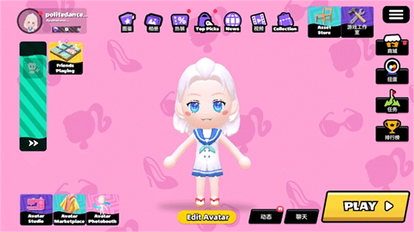 1、玩家进入后,能够自由搭配虚拟形象,发型、脸型、服装等均可自由选择搭配。