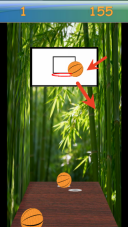 1、进入游戏后,玩家会身处一片清新的竹林场景里,首先得点击屏幕上的篮球做好投掷准备,这时候要留意观察篮筐的远近与位置,为接下来的投篮操作做铺垫。