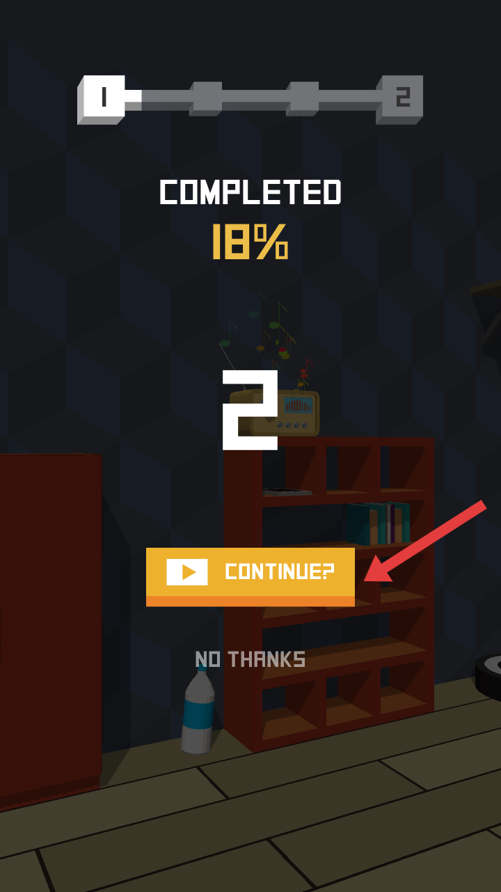 2、第一阶段结束后,要点击橙色的【CONTINUE】按钮来继续游戏,让进度(当前18%)往前推进。