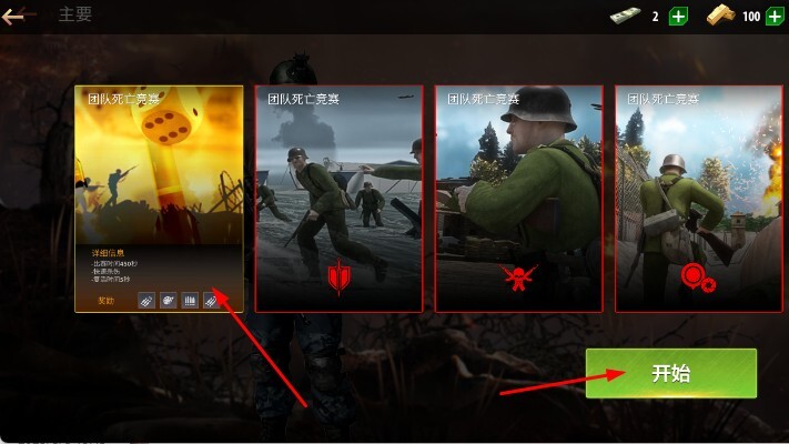 1、进入主界面的团队死亡竞赛模式后,挑选你想参与的战斗模式,点击开始就能进入战斗场景。