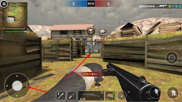 2、进入战斗场景后,可借助左侧的虚拟摇杆来操控角色移动,右侧的按钮则用于执行射击、切换武器等操作。同时要留意小地图,以此来定位敌人,随后瞄准并攻击出现的敌人。