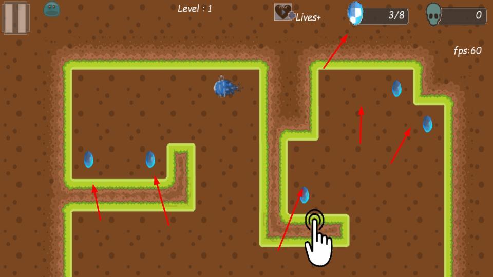 2、角色要收集蓝色的蛋,与此同时留意上方的Lives+以及收集进度,以此为完成关卡任务打下基础。