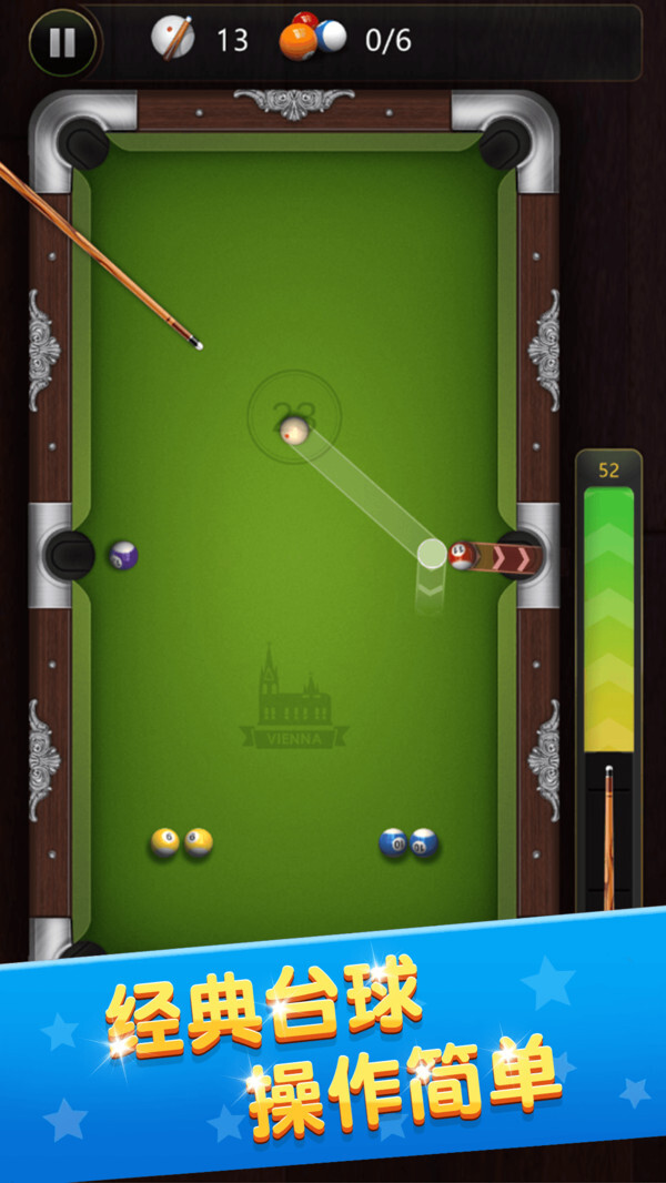 2、还原现实桌球玩法,采用真实物理参数,让广大桌球爱好者能够轻松上手,击球精准利落。