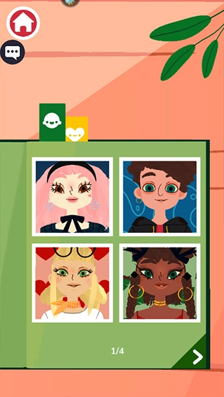 挑选一个背景,看着他们摆出姿势并拍照!您还能把角色的照片存进相册,之后再给它们设计造型。