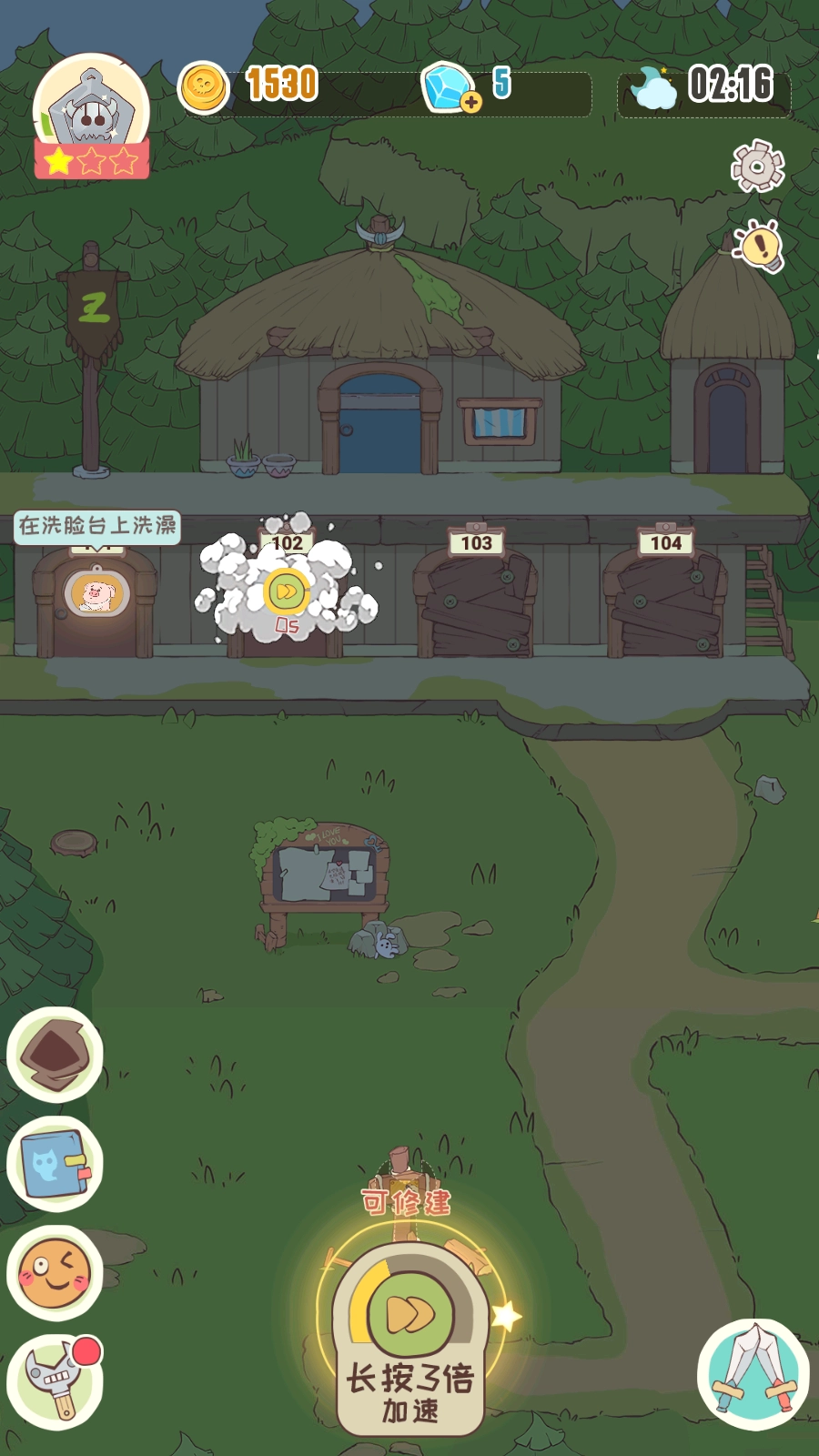 点击屏幕底部的按钮并长按,就能开启三倍游戏速度,让建造、升级和收益积累都变得更快,帮你节省时间,轻松达到事半功倍的效果!