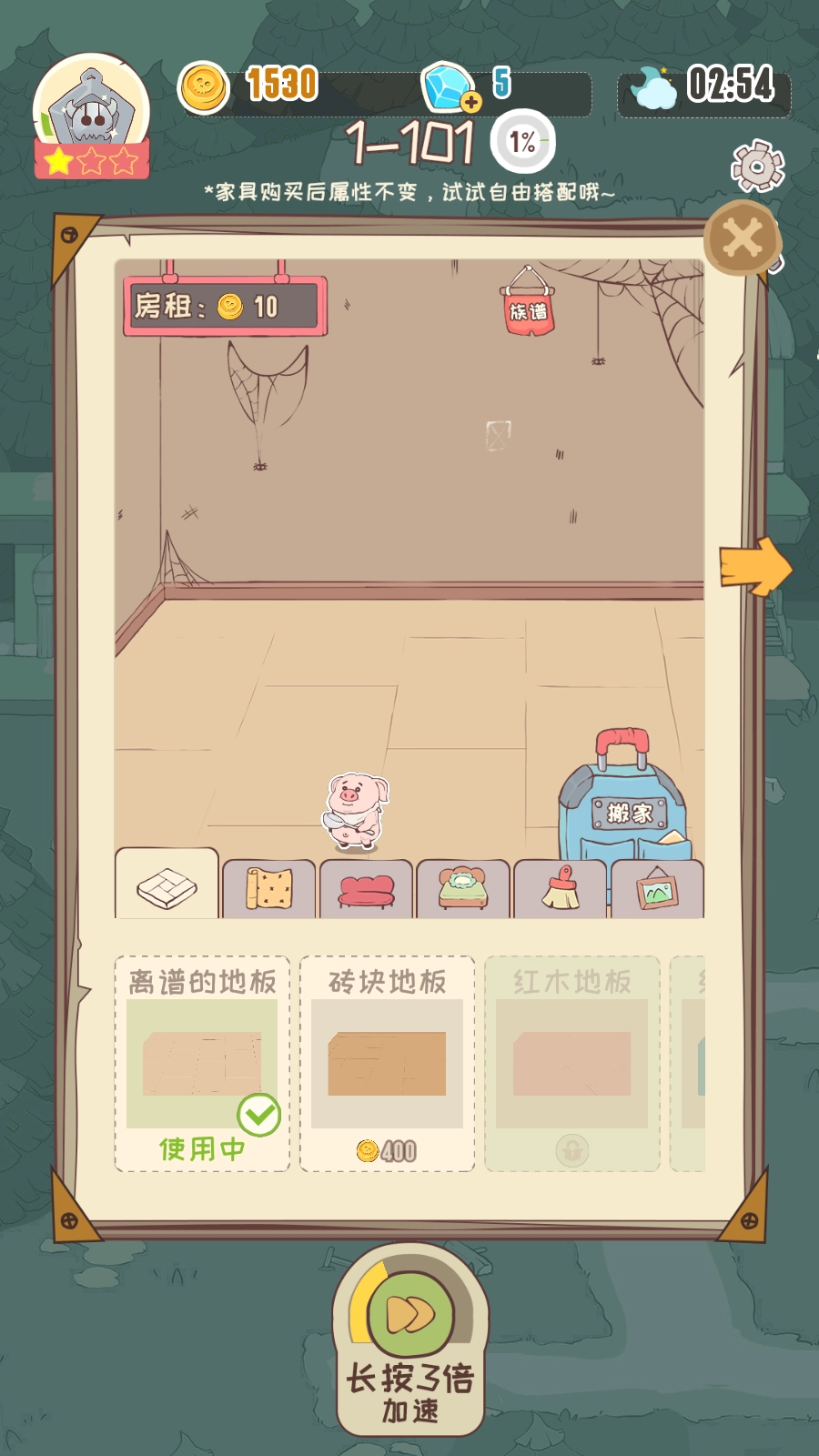 房间里的各类家具都能用金币购买或者升级。配置越是高档舒适,越能提高租客的满意度,进而获得更高的租金收益。投资装修绝对稳赚不赔!
