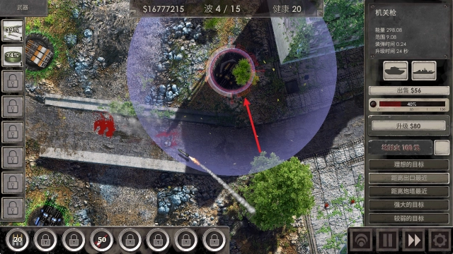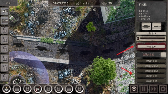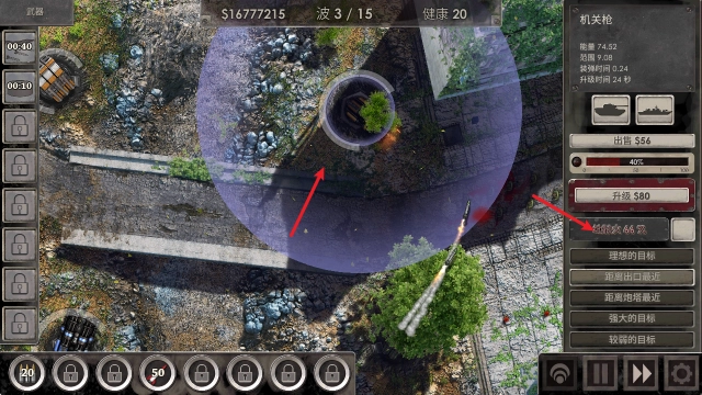 建造完成后,可点击进行升级操作,也能调整优先攻击的目标。