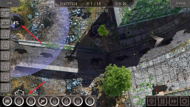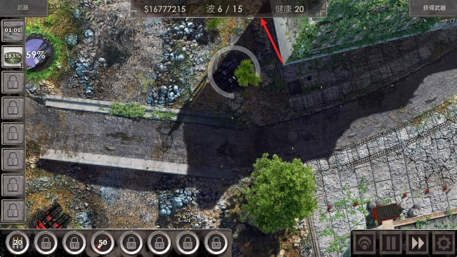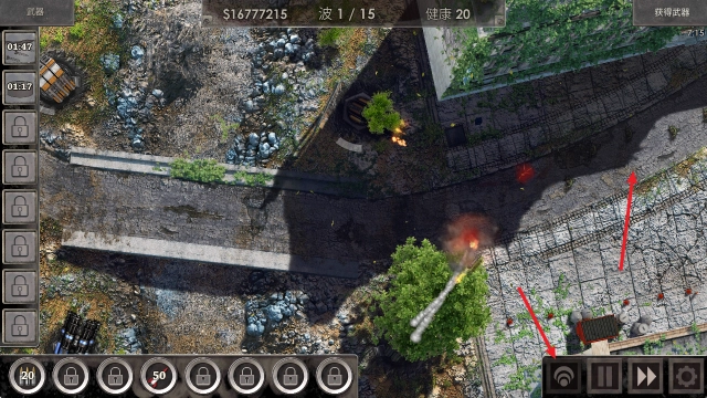 开始战斗后,拖动下方的炮塔即可在合适的位置建造。