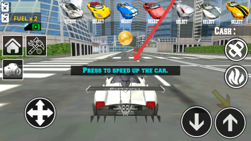 1、需按照系统提示点击右侧的向上箭头按钮,以此触发汽车加速,体验速度提升时的操作反馈。