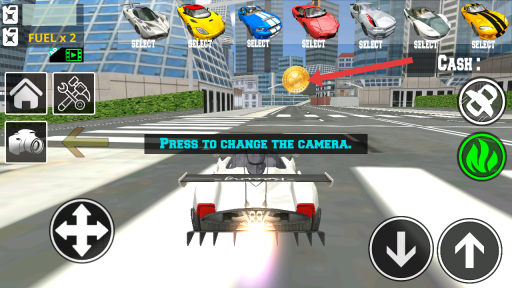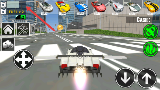 2、可点击左侧相机图标切换驾驶视角,同时瞄准头顶金币,切换飞行模式驾驶车辆进行收集。