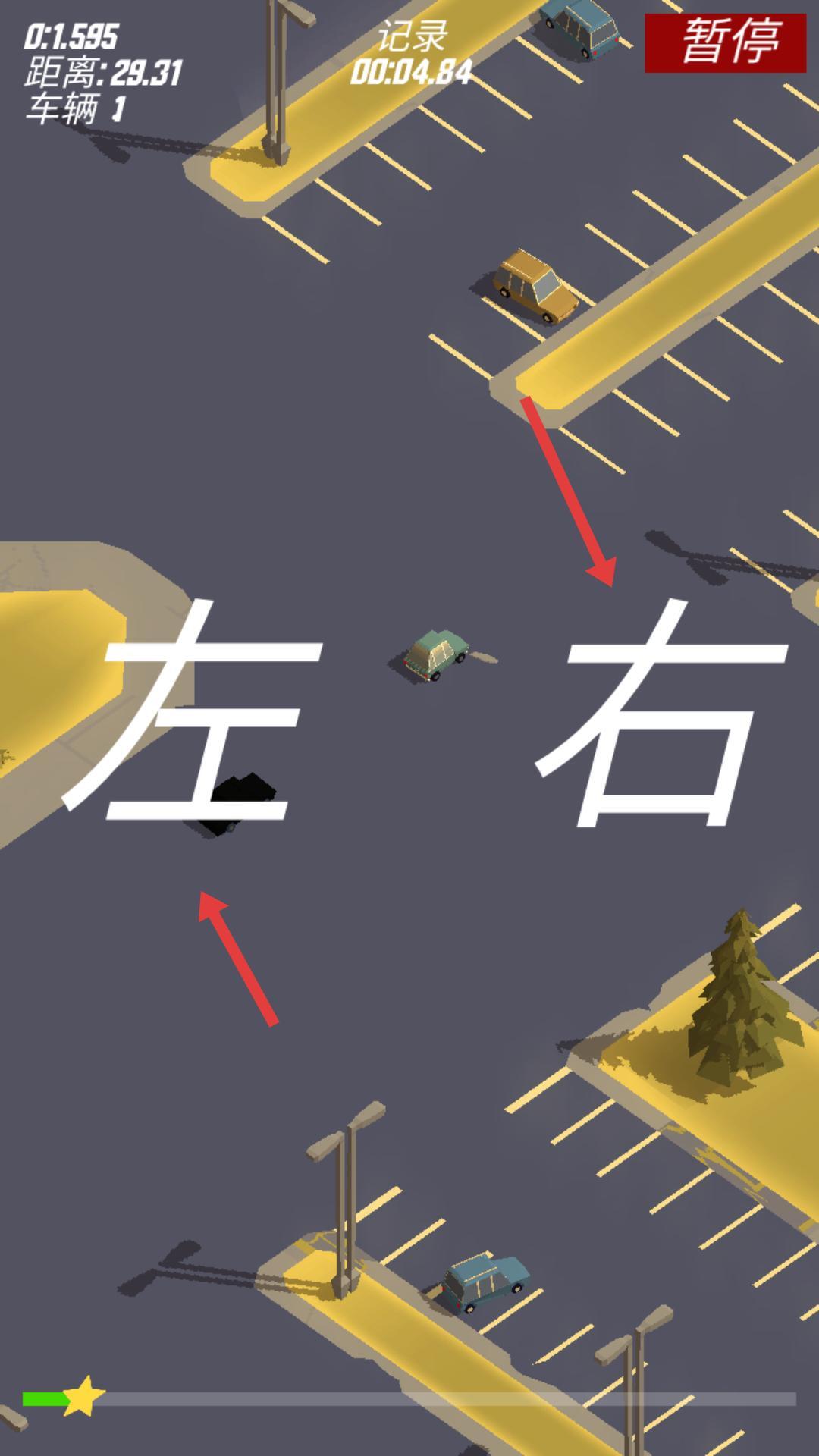2、在车辆行驶过程中,根据屏幕上出现的左、右方向提示,点击对应的方向按钮来操控汽车转向,以此避开沿途的障碍物,保持持续行驶状态,进而提升行驶的距离。