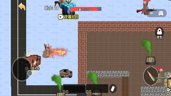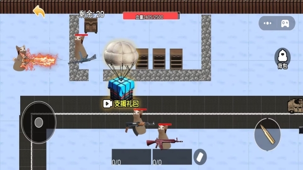 2、在场景里拾取支援礼包、回血礼包之类的物资,以此补充弹药、恢复血量,提升自身的生存能力。