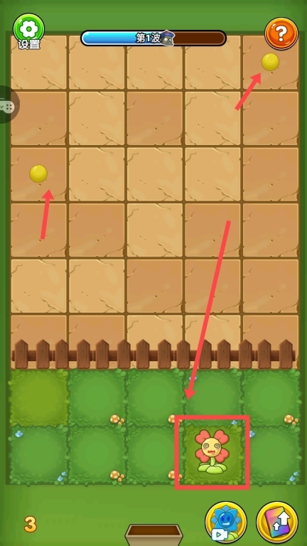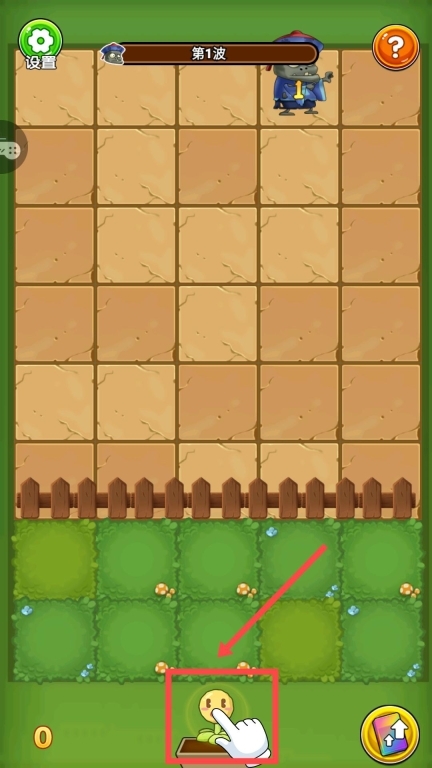 在第一波僵尸到来之前,点击下方的植物,将它们放置到格子里,以此搭建起防御阵线,阻止僵尸继续前进。