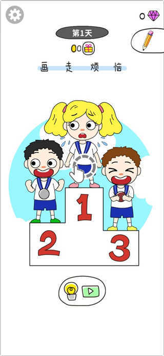 2、在这里,只需简单画一个圈,就能赢得奖牌,让小姑娘高兴起来。
