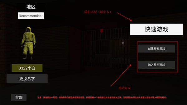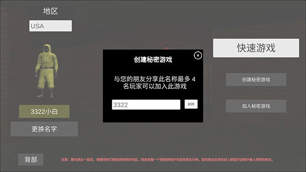 2、“快速”模式对应的是随机匹配;要是想和朋友一起玩,选择“创建秘密”选项就能创建房间。