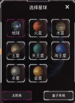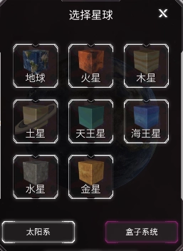 当你点击盒子系统后,这些星球的外观都会变成正方体。