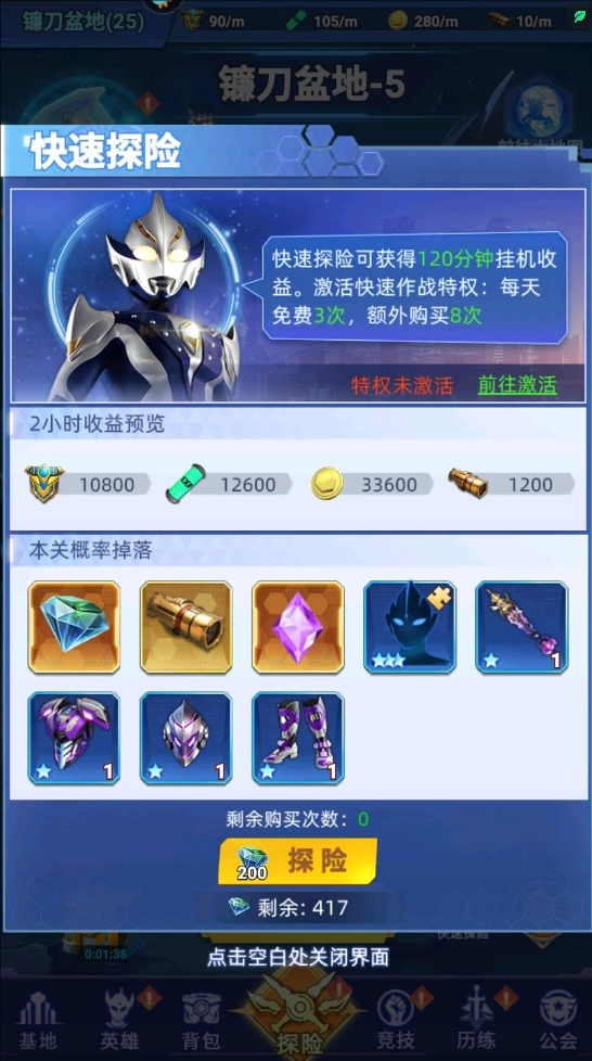 4、最后就是通过快速探险来提升等级了
