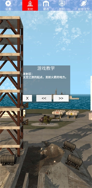 1、打开航天火箭探测模拟器后,首先会进入发射区域,这里是太空探索之旅的起点,也是火箭升空的初始位置;