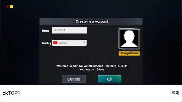 1、启动程序后,第一步是创建一个独具个性的玩家ID,需要注意的是该ID仅支持英文字符与数字的组合,确认无误后点击OK按钮就能进入主界面,为投身战场做好准备。