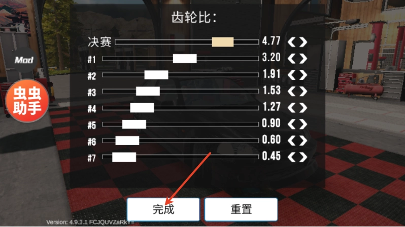 4、之后可依据你的需求对齿轮比进行调整,调整完毕后点击“完成”按钮即可。