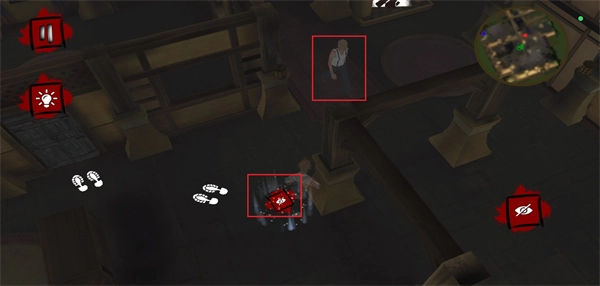 1、游戏开始后留意左上角的小地图,红色光点显示邻居的实时位置,借助阴影区域灵活移动,躲开对方视线推进探索进程