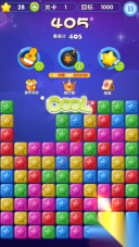 2、可以合理利用上方的道具(比如炸弹),点击释放就能清除掉大片星星,帮助你更快达到目标分数。