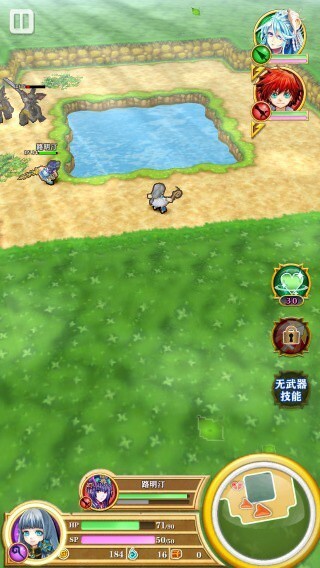 就像图中展示的那样,围着池子攻击怪物时,能清楚分辨敌我所处的位置,方便判断该在何处停下战斗,以及距离多近时要开始躲避。另外,这种转角是直角的障碍物(池子),用来躲避敌人的攻击也十分便捷。