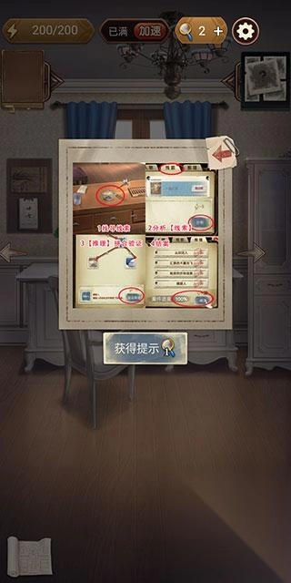 3、接着在线索界面中对收集到的线索进行分析。