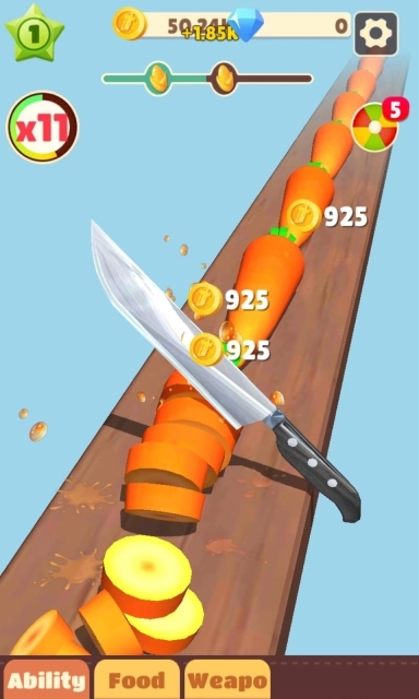 3、你切割的数量越多,获得的分数就越高,如此一来玩家便能收集硬币并解锁道具。