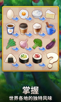 3、探索世界各国的特色菜谱与美食,在持续通关的过程中,解锁更多妙趣横生的故事。